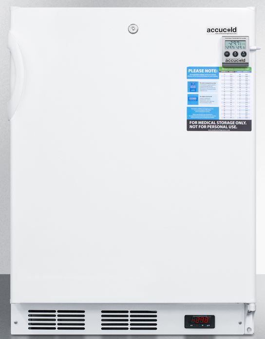 Accucold medical all-freezers offer low temperature storage in a perfectly sized footprint. The VLT650ADA is an upright all-freezer sized with a 24" footprint. At 32" high, it is designed to fit under lower ADA compliant counters. The front-breathing design allows built-in installation, while the fully finished cabinet also allows freestanding use.Read More