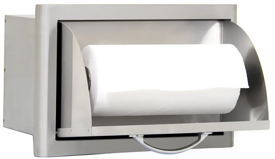 The Blaze Built-In Paper Towel Holder features clean design elements and quality construction using commercial grade 304 stainless steel that can stand up to the outdoor elements. Accented with curved handles and a unique, completely rounded bevel design, this fully enclosed paper towel holder provides that quality touch to your outdoor kitchen or BBQ island.Read More