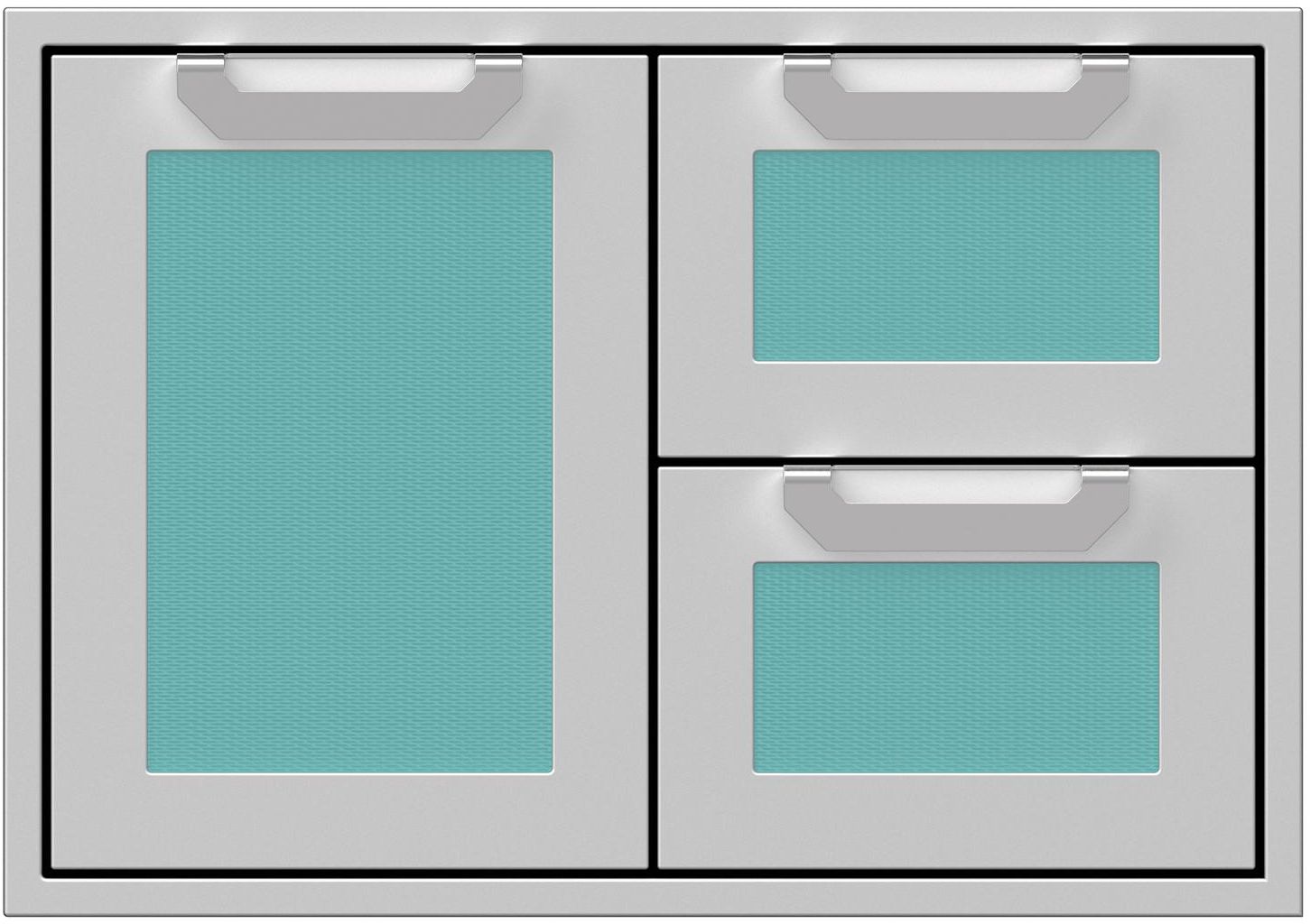 Combo door/drawers deliver highly convenient heavy-duty storage. The commercial-grade handles, recessed Marquise Accented™ panels and heavy-gauge welded body complement Hestan grills in form and function.Read More