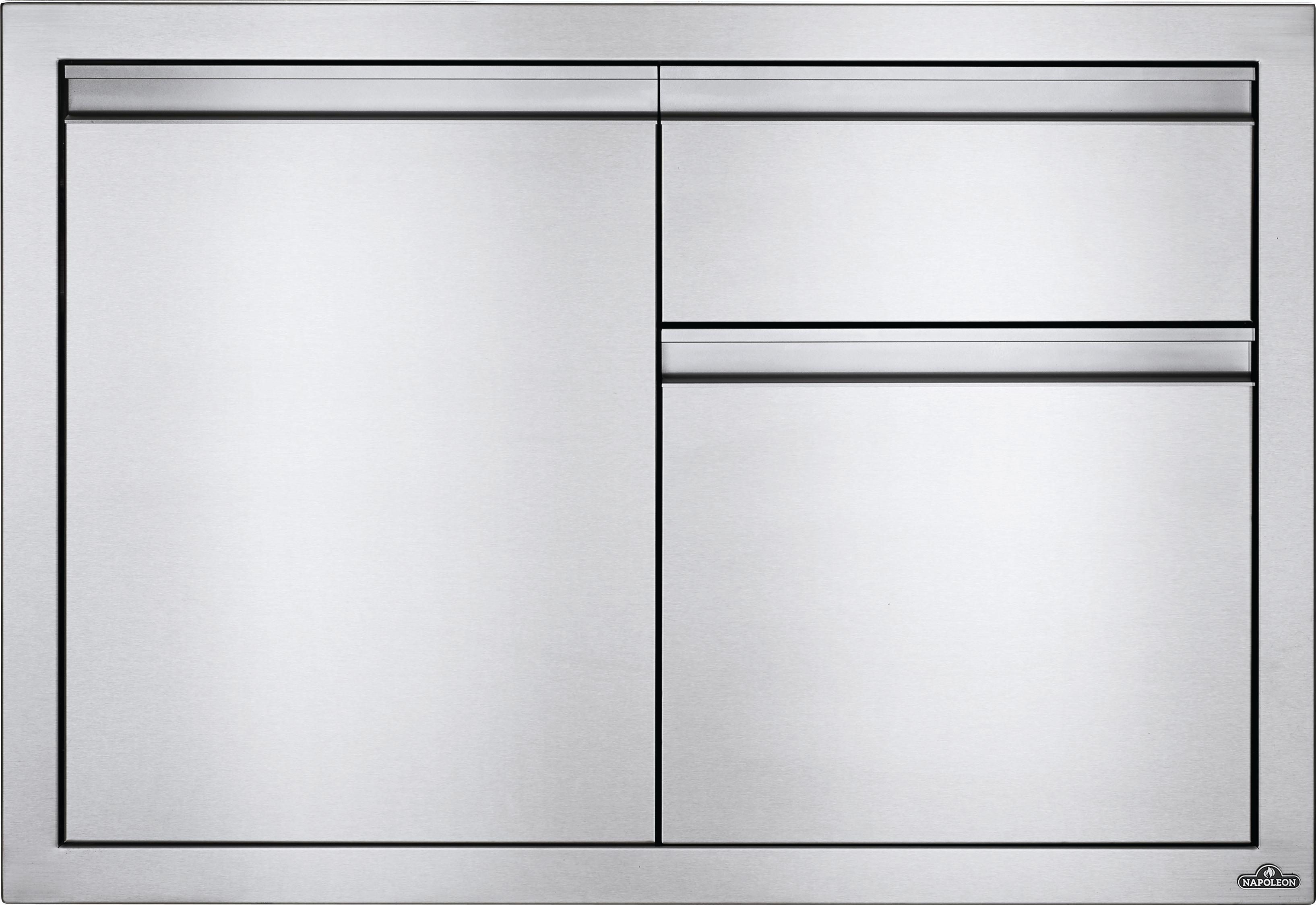 Creating your own custom grill island has never been easier with Napoleon's Built-In Components. Every great outdoor kitchen needs storage; this 36" x 24" built-in component has everything you need for storage. Featuring a waste and recycling bin pull out, that can double as storage as well as a paper towel drawer, and a single large door for storage. The stainless steel construction, soft closing hardware, seamless trim, and anodized aluminum handles provide durability and endless installation possibilities.Read More
